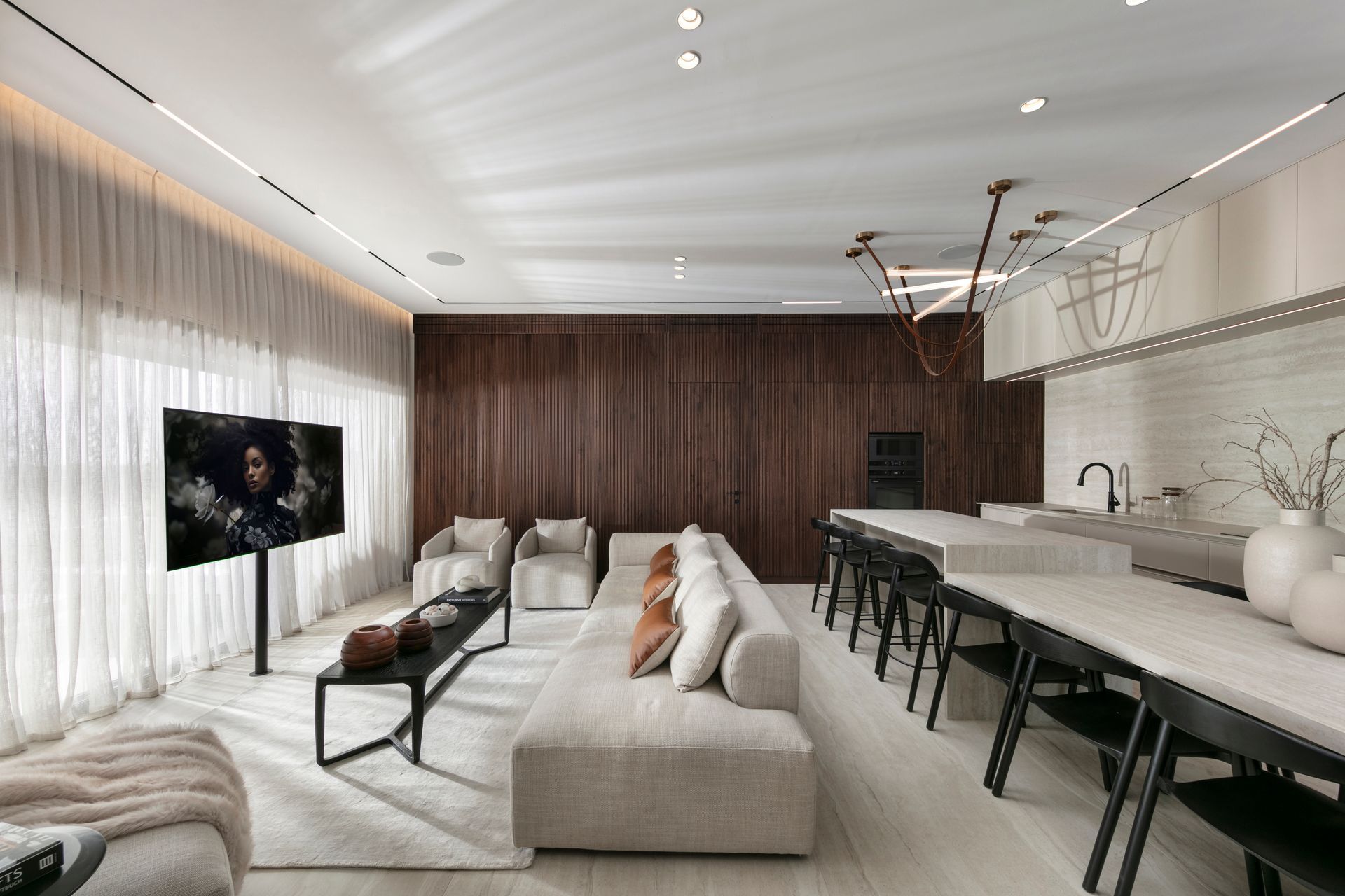 פנטהאוז ייחודי בחיפה, בשטח של כ-200 מ"ר, שעוצב עבור רווק כחלק מתהליך עמוק ומדויק המשלב בין תכנון חלל להסתכלות אישית ואסטרולוגית.