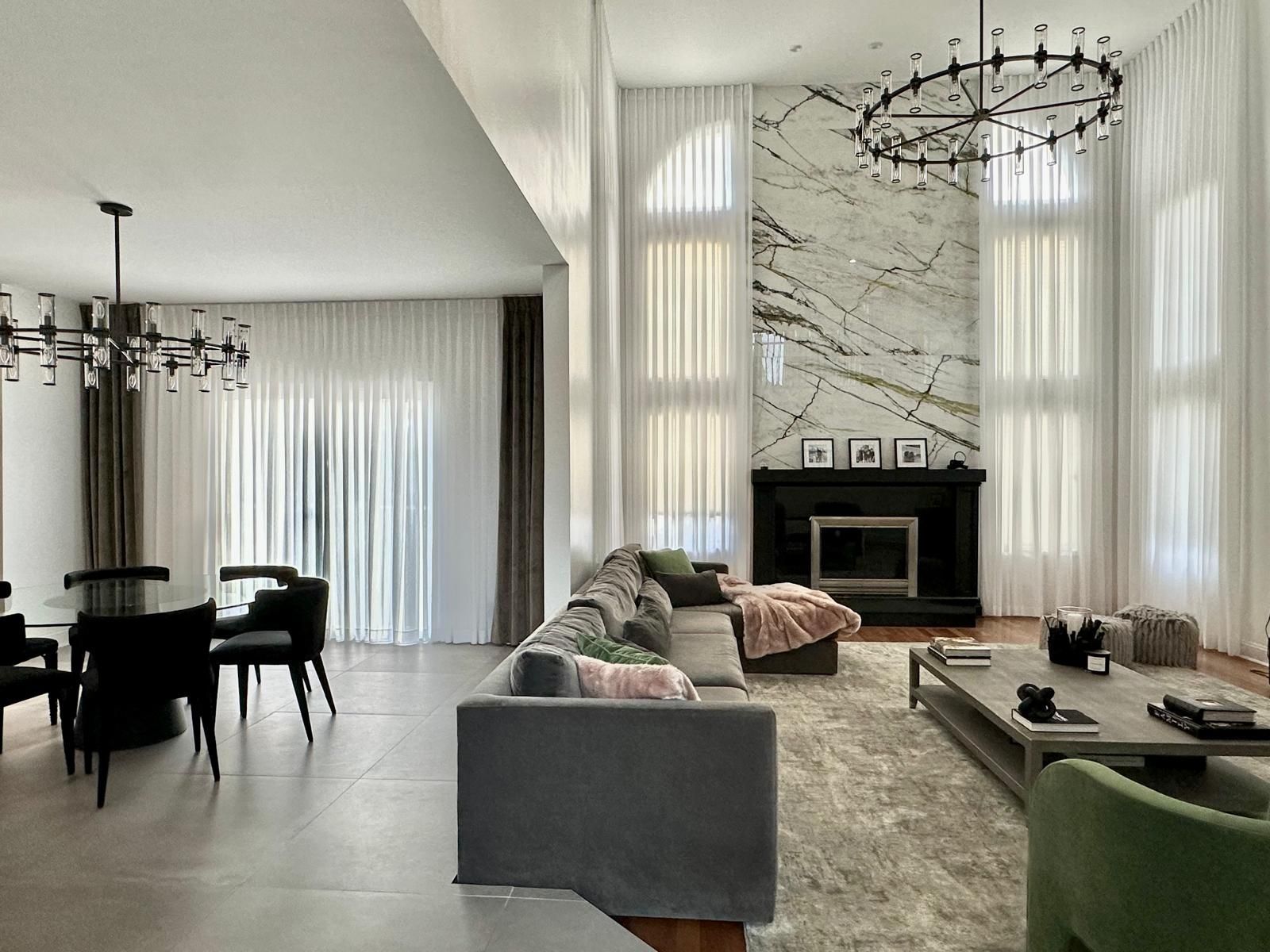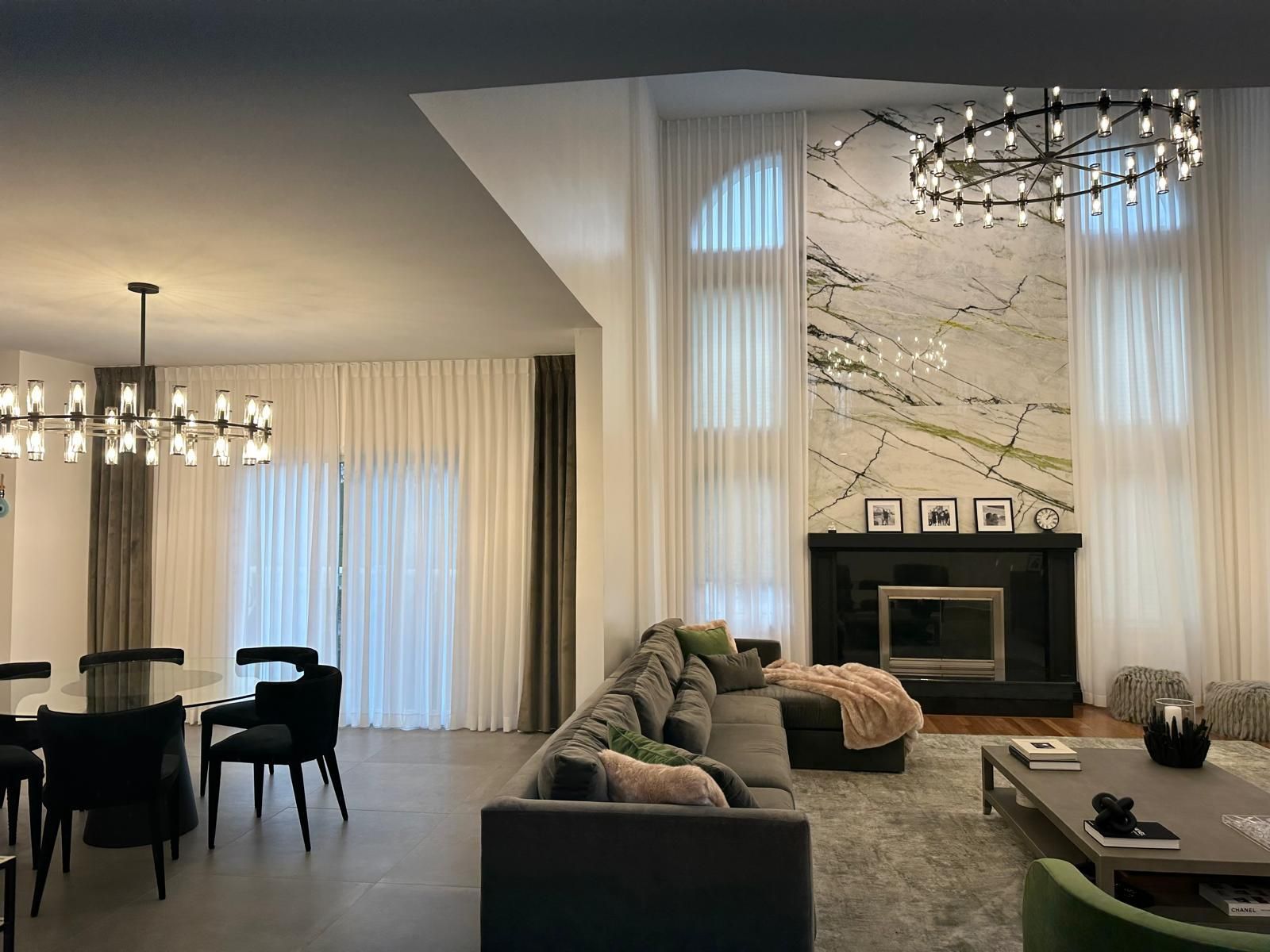 הפרויקט נפרס על שטח של 2 דונם מתוכם 600 מ״ר בנוי. שדרגנו את כל קומת הכניסה וחדר ההורים. החלפנו ריצוף והשארנו את הפרקט הקיים, החלפנו את כל הרהיטים והתקנו וילונות, ושדרגנו את המטבח. יצרנו הנמכות תקרה, התקנו תאורה חדשה, חיפויי קירות, והשלמנו את העיצוב עם הלבשה מלאה של רהיטים ואקססוריז, ליצירת בית מעוצב ומזמין.